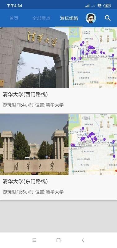 3、应用中有大量的游玩线路,用户可以跟随线路全面的游览清华大学,提升用户体验;
